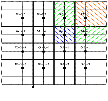 Altrimenti si applica il seguente procedimento: semplicemente, si decrementa θ di una quantità pari a 2*phase, ovvero si sottrae a θ un angolo pari all'apertura angolare di una singola zona di decisione. Così facendo si sposta l'osservato da una zona di decisione a quella immediatamente precedente (procedendo in senso orario). Tale tecnica viene portata avanti fino a quando l'angolo non risulta inferiore a phase, ovvero fino a quando l'osservato non cade nella zona di decisione associata al simbolo a0. Quando si esce da tale loop la variabile cont contiene il numero di decrementi effettuati e a quel punto è immediato capire in che regione cade il campione osservato e quindi decidere per: