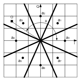 Per ogni altra modulazione si definisce la variabile phase=180°/MPSK. Quindi, conoscendo il campione osservato e conoscendo le sue componenti, è possibile ricavare l'angolo che quest'ultimo forma con l'asse in fase, θ.