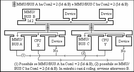 Se quello che si è definito è un bus A (con o senza memorie), assegnando a 'BUS' il valore di un Identificatore di un altro bus B, si realizza una connessione tra i due in modo tale che un eventuale processore connesso al bus B 'vede' anche (se ci sono) le memorie RAM e ROM di A ( ma non eventali dispositivi connessi al bus A); ciò ovviamente nell'ipotesi che gli insiemi di indirizzi di queste memorie siano disgiunti da quelli di memorie e dispositivi connessi al bus B (Fig. 13 e Fig. 14).