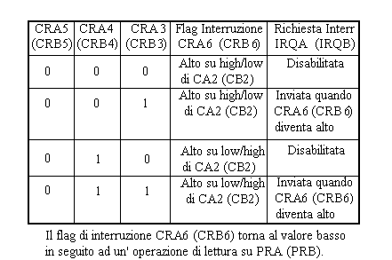 Il significato dei singoli bit di CRA è mostrato in Tabella 14; i bit 6 e 7 sono a sola lettura e rappresentano i flag di interruzione; se le interruzioni sono abilitate, quando uno dei due flag diviene alto viene inviata al gestore delle interruzione l'IRQA (si veda la successiva descrizione dei parametri).