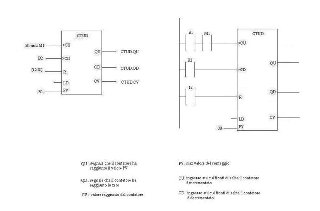 La variabile utilizzata per tale controllo è CTUD.CV. che segnala il numero di pezzi che il contatore bidirezionale ha percepito entrare ed uscire attraverso i sensori B1 e B2.