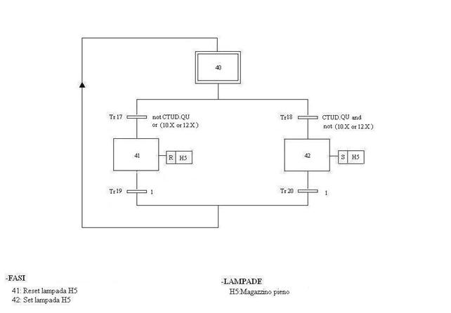 L' SFC 4 gestisce il funzionamento della lampada H5 che segnala se il magazzino è pieno.