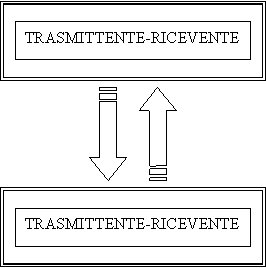 - La comunicazione tra due sistemi è di tipo half-duplex, quando si tratta di trasmissione a doppio senso alternato. Il flusso dei dati avviene in entrambe le direzioni tra le due componenti in tempi diversi.