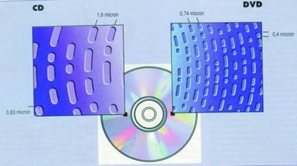 La velocità lineare costante del sistema DVD è circa tre volte superiore a quella dei tradizionale CD: 3-5/4 metri al secondo (i valori sono leggermente superiori per i DVD multilayer); il valore di transfer rate è di 10.8 megabit al secondo, otto volte maggiore del valore fornito da un lettore CD a singola velocità.. L'incremento generale delle prestazioni in arte giustificato dal fatto che i 'pit' buche, fosse del DVD, mediante i quali il raggio laser legge i dati digitali, hanno un diarnetro di 0,4 micron (0,83 micron per un CD tradizionale). Grazie alla riduzione delle piste di dati, disposte a spirale in senso orario, distano l'una con l'altra solo 0,74 micron contro il valore di 1.6 micron del CD tradizionale. Ciò significa che nonostante le dimensioni fisiche uguali per i due supporti, in realtà, nel DVD la pista dati di ogni livello è lunga circa il doppio di quella di un tradizionale compact disc. Per leggere i dati dei DVD, contenuti in tracce di dimensioni significativamente ridotte, è necessario impiegare un laser a luce rossa visibile di lunghezza d'onda pari a 650-635 nanometri invece dei laser infrarossi impiegati nelle unità CD tradizionali che hanno una lunghezza d'onda di 780 nanometri. Questa particolarità del sistema ha prodotto una serie di indesiderati 'effetti collaterali' consistenti nella difficoltà di lettura dei CD tradizionali su un'unità DVD e sull'impossibilità di lettura dei supporti CDR nelle medesime unità.