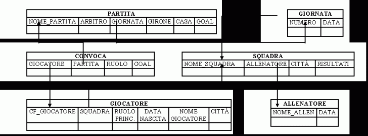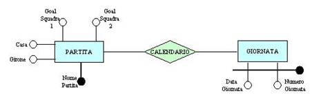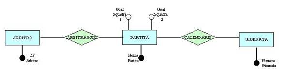 Importante è il concetto di entità Partita: l'entità Partita consiste fondamentalmente in una coppia di squadre. Ad essa fa riferimento sia l'entità Arbitro che l'entità Giornata: quest'ultima tiene traccia della data e del giorno delle partite.