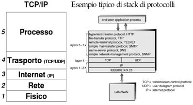 Alternativo al modello ISO/OSI c'è il modello TCP/IP, uno standard de facto con soli 5 livelli