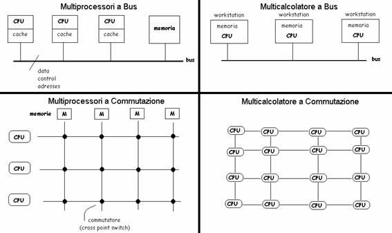Si può distinguere tra Sistemi Multicomputer (o a scambio di messaggi) - tante CPU ognuna con la propria memoria locale (SD in senso stretto) - e Sistemi Multiprocessore (o Shared Memory) - tante CPU e una memoria condivisa (Sistemi paralleli).