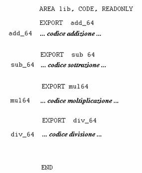 Risulta adesso necessario creare un nuovo file chiamato ad esempio lib64.h organizzato come segue: