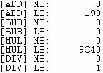Non esistendo variabili a 64 bit, è stato necessario creare una struttura che contenesse due interi che rappresentassero rispettivamente la parte alta e la parte bassa del risultato, come mostrato dalla seguente immagine: