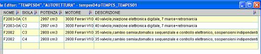 Si vuole realizzare una base di dati per un team automobilistico di Formula 1. Le autovetture in dotazione al team sono caratterizzate da una sigla, da un nome, dalla potenza, dal tipo di motore e da una descrizione tecnica.