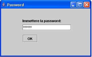Anche in questa Applet la password è gestita in modo tale da garantirne la protezione durante la digitazione, infatti ogni carattere inserito sarà sostituto,a video, da un asterisco.