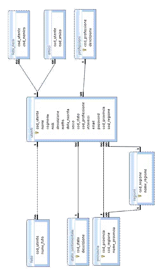 Amici: contenente tutti gli utenti amici di un certo utente (identificabile tramite il codice utente)