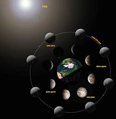 Se osserviamo il nostro satellite in diverse serate successive, ci rendiamo conto che le sue condizioni di illuminazione non sono sempre le stesse: la faccia della Luna rivolta verso la Terra si presenta ora illuminata completamente, ora solo parzialmente, ora del tutto oscura. Questi diversi aspetti, chiamati fasi lunari, dipendono dalle posizioni che la Luna assume, nel corso della sua rivoluzione, rispetto alla Terra e al Sole che la illumina.