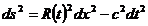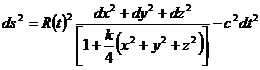 La relatività generale considera però anche spazi curvati dalla presenza di materia. La metrica necessaria per calcolare le distanze spazio-temporali tra eventi in spazi curvi fu ottenuta nel 1935 da Robertson e Walker, indipendentemente l'uno dall'altro. Essa contiene, come è facilmente prevedibile, sia l'indice di curvatura k, che il fattore di scala R.