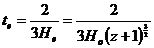 Possiamo inoltre calcolare il tempo di emissione in funzione di z. Infatti, sempre tenendo presente la 27)