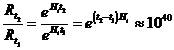 Infatti, calcolando il rapporto tra le dimensioni dell'universo al tempo t2 = 10-32 s e le dimensioni dell'universo al tempo t1 = 10-35 s si ottiene (Hi è calcolabile per via teorica e vale 1034 s-1)