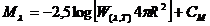 Tenendo poi conto che la luminosità apparente che segna il punto zero della scala delle magnitudini apparenti è 2,67 10-6 lux (lumen/m2), possiamo trovare il corrispondente valore (M = 0) per la scala delle magnitudini assolute, calcolando la corrispondente luminosità intrinseca visuale a 10 parsec