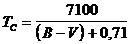 Anche in questo caso la taratura viene effettuata fissando la costante di zero in modo che B-V = 0 per stelle di classe spettrale A0 (T 10.000°K). La costante di zero varrà quindi cost = + 0,5 e la relazione diventa