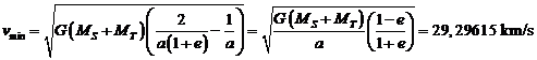 La velocità minima si ha in afelio, in corrispondenza del raggio massimo Rmax = a(1+e)