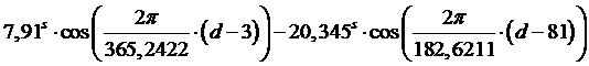 dove d è il numero di giorni dall'inizio dell'anno e l'81mo giorno dell'anno è l'equinozio di primavera in corrispondenza del quale si presenta il primo minimo..