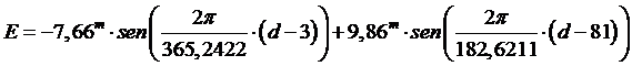 Per questo motivo i segni delle due componenti (eccentricità e obliquità) dovranno essere cambiati e l'equazione del tempo E si scrive