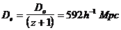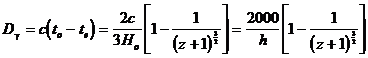 Che ci permette di calcolare la distanza De di un oggetto celeste di cui conosciamo il red-shift z, al tempo te di emissione.