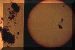 Uno dei piu' estesi gruppi di macchie solari della storia moderna: quello dell'Aprile-Maggio 1947. Le macchie sono aree di attivita' particolare della fotosfera, legate al campo magnetico, che possono durare fino ad alcune settimane e tendono a formarsi con un periodo ciclico undecennale che sembrerebbe influenzare il clima terrestre. Dal loro spostamento regolare Galileo capi' che il Sole ruota sul proprio asse. |