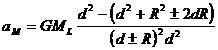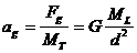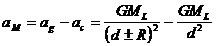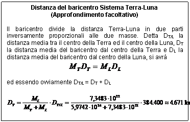 distanza tra i baricentri della Terra e della Luna, l'accelerazione