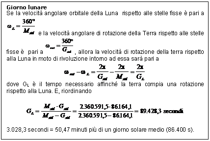 luna, cosicché la Terra compie una rotazione rispetto ad esso in un giorno