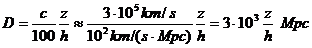 Poiché il valore di Ho è compreso tra 50 e 100 è evidente che h può assumere valori compresi tra 0,5 e 1. Così se vogliamo utilizzare la relazione di Hubble per determinare la distanza di oggetti lontani, dovremo scrivere