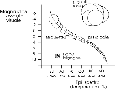 All'inizio del '900 gli astronomi E. Hertzsprung e H. Russell, indipendentemente l'uno dall'altro, scoprirono che riportando in un diagramma le stelle, ordinate in base alla loro temperatura superficiale (tipo spettrale) ed alla loro magnitudine assoluta, se ne otteneva una distribuzione ordinata. Ponendo in ascisse i tipi spettrali o la temperatura superficiale in senso decrescente ed in ordinata la magnitudine assoluta decrescente (luminosità crescente), la maggior parte delle stelle (il 90% circa) si distribuisce lungo una linea curva che attraversa il diagramma diagonalmente dall'alto a sinistra, a destra in basso. Tale fascia è detta sequenza principale. Il sole si trova circa a metà della sequenza principale. Una piccola percentuale di stelle si concentra poi in due raggruppamenti isolati agli angoli opposti, in alto a destra e in basso a sinistra.