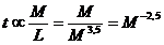 I tempi di evoluzione di una stella decrescono quindi in modo esponenziale all'aumentare della massa.