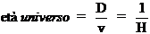 Come si può vedere l'età dell'universo è compresa tra 10 (h = 1) e 20 (h = 0,5) miliardi di anni. Piccole variazioni di Ho possono dunque modificare in modo sensibile le nostre stime sull'età dell'universo.