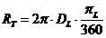 Dunque l'arco AB posto sulla circonferenza di raggio DL ha una lunghezza pari a