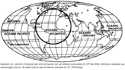 semicircolo massimo di intersezione tra la superficie terrestre e piani