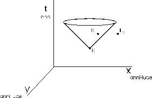 Solo l'evento E , interno al cono di luce prodotto da E, può subire una qualsiasi effetto causale da parte di quest'ultimo. |