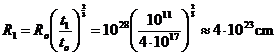 Calcoliamo a titolo di esempio le dimensioni dell'universo attualmente osservabile e la relativa distanza-orizzonte al tempo 10 s, inizio dell'era della materia.