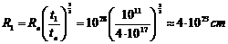 se ora poniamo t1 = 1011 s possiamo calcolare le corrispondenti dimensioni dell'universo R1