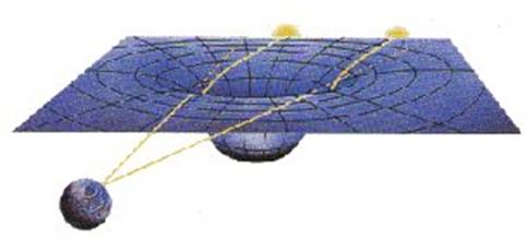 Quindi nella Teoria della Relatività Generale, la gravità è descritta come una deformazione dello spazio-tempo. Un corpo dotato di massa non farebbe altro che 'piegare' lo spazio-tempo attorno a sé.