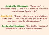 INTERCETTAZIONE DIALOGHI TRA CONTROLLO MISSIONE E APOLLO 11 RIPORTATE DAL