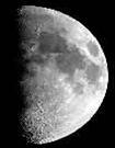 A 22,1 giorni notiamo ancora metà Luna illuminata: è l' 'Ultimo Quarto' e dista 90° gradi dal Sole verso ovest; si dice che è in Quadratura Occidentale e passa in meridiano circa 6 ore prima di esso.