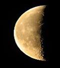 A 7,4 giorni si osserva il 'Primo Quarto': è illuminata a metà, e si trova in Quadratura Orientale, dista 90ø dal Sole verso est e passa in meridiano circa 6 ore dopo di esso.