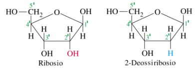 Nei 4 nucleotidi del DNA il pentoso è il desossiribosio (o deossiribosio), una molecola di ribosio che ha perso un atomo di ossigeno, mentre nell'RNA il pentoso è il Ribosio.