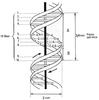 In natura il DNA si presenta con una struttura secondaria a doppia elica frutto dell'associazione di due singoli filamenti.