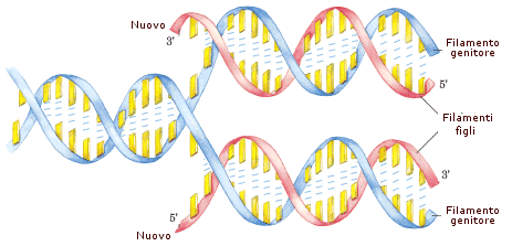 Per le caratteristiche intrinseche al legame stesso, la costruzione dei nuovi filamenti avviene solo in direzione 5'→3'. Ed avendo il DNA due filamenti antiparalleli, la sintesi dei due nuovi filamenti avviene necessariamente in direzioni opposte.