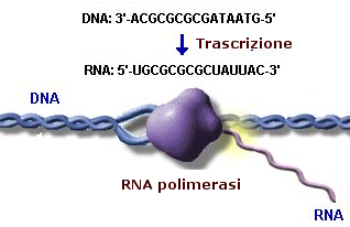 Le molecole di RNA vengono sintetizzate utilizzando un filamento di DNA come stampo sul quale vengono appaiati i singoli nucleotidi complementari dell'RNA (trascrizione).