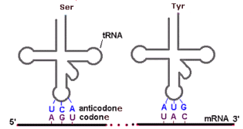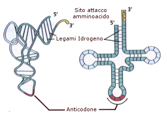 La parte più caratteristica della molecola del tRNA è l'ansa terminale, detta anticodone poiché porta tre basi complementari ai codoni degli mRNA.