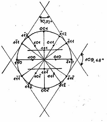 Fig. 3 è mostrata la proiezione stereografica del cristallo di Si sulla superficie (110): i