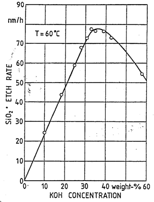 In letteratura esistono dati conflittuali sulle velocità di attacco dei differenti piani cristallini del Si: questo non deve sorprendere, dato l'elevato numero di parametri che possono influenzare i risultati: la temperatura, il mescolamento, le dimensioni della struttura, la concentrazione di KOH, l'aggiunta di alcoli, i difetti superficiali, gli agenti complessanti e surfactanti etc.