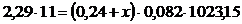 Queste (0,24 + x) moli generano, a T = 750 + 273,15 = 1023,15 K. una pressione complessiva pari 2,29 atmosfere. Scriviamo allora l'equazione di stato per la miscela gassosa all'equilibrio